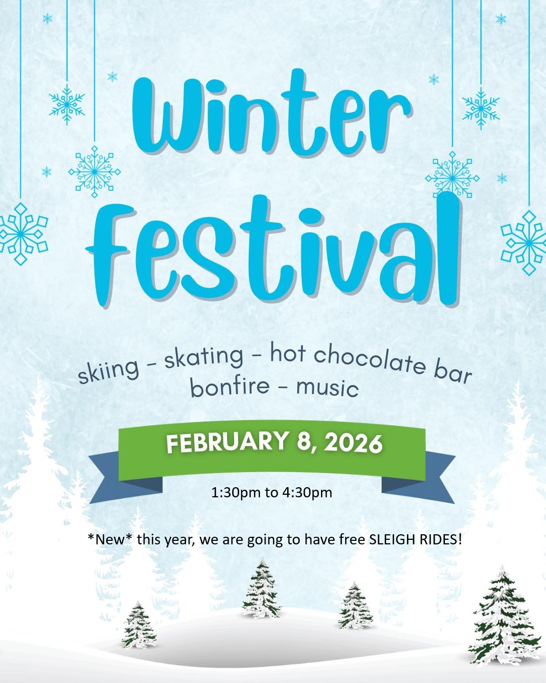 Come join us celebrate winter at the Lindonwoods community Centre! There will be skating, hockey, cross country-ski trails, our ski library, horse drawn sleigh rides, a bonfire, some marshmallow roasting, and a hot chocolate bar provided by
